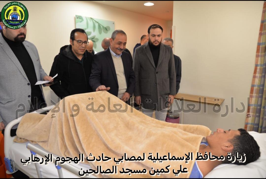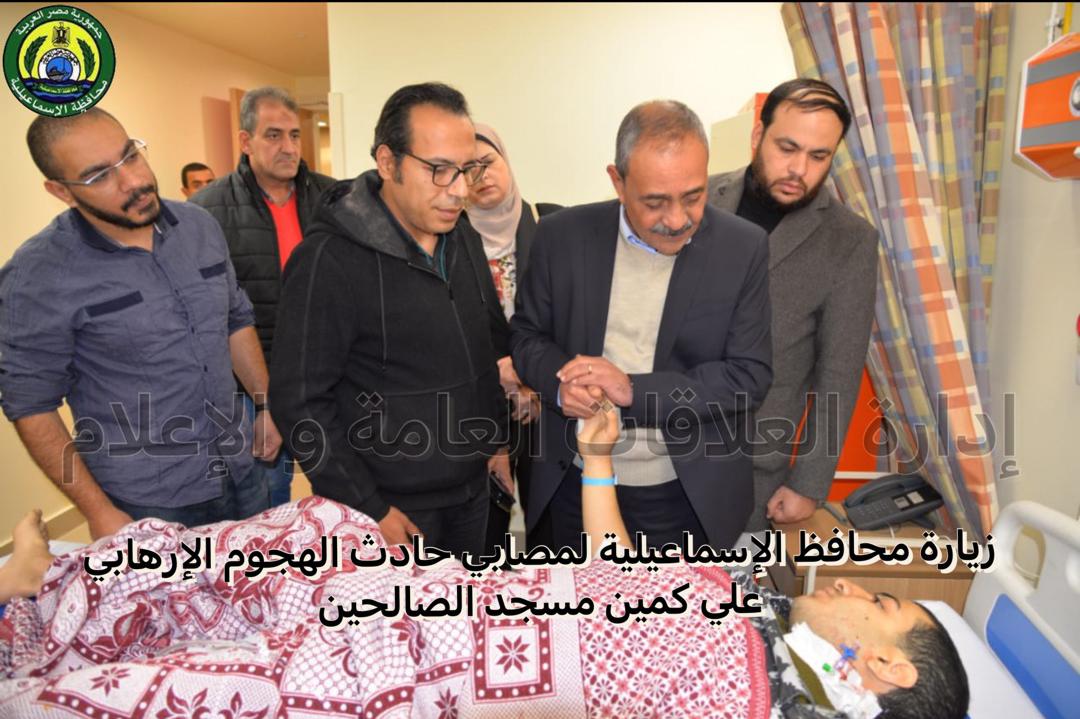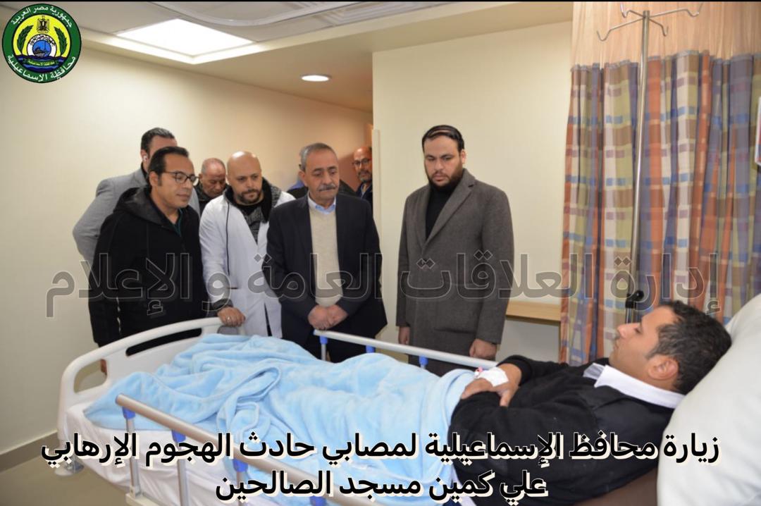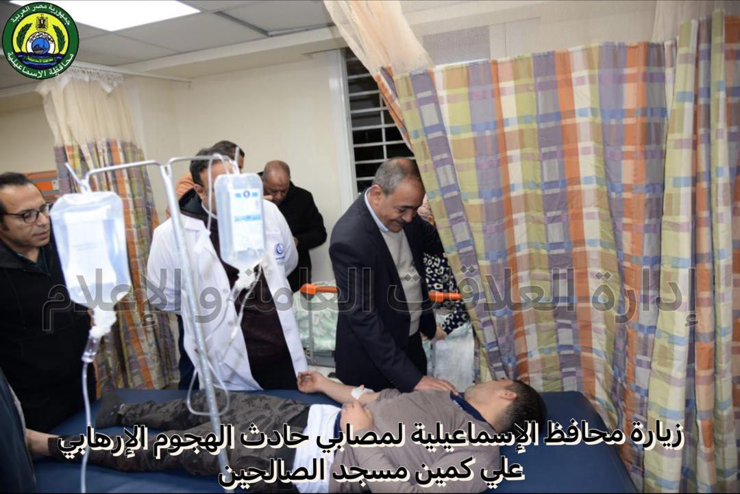 وكان اللواء شريف فهمي بشارة محافظ الإسماعيلية، يرافقه كل من الدكتور أحمد البرعي مدير فرع هيئة الرعاية الصحية بالإسماعيلية، والدكتور على حطب وكيل وزارة الصحة، قد قام بجولة تفقدية للاطمئنان على الحالة الصحية لمصابي حادث الهجوم على ارتكاز أمني أمام مسجد الصالحين الواقع بشارع شبين الكوم في الإسماعيلية.