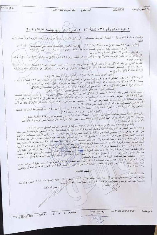 ألزمت محكمة أسرة بندر بنها زوجا بأن يؤدي للمدعية متعة بمبلغ 288 ألف جنيه، وألزمته بالمصاريف ومبلغ 75 جنيها أتعاب محاماة.