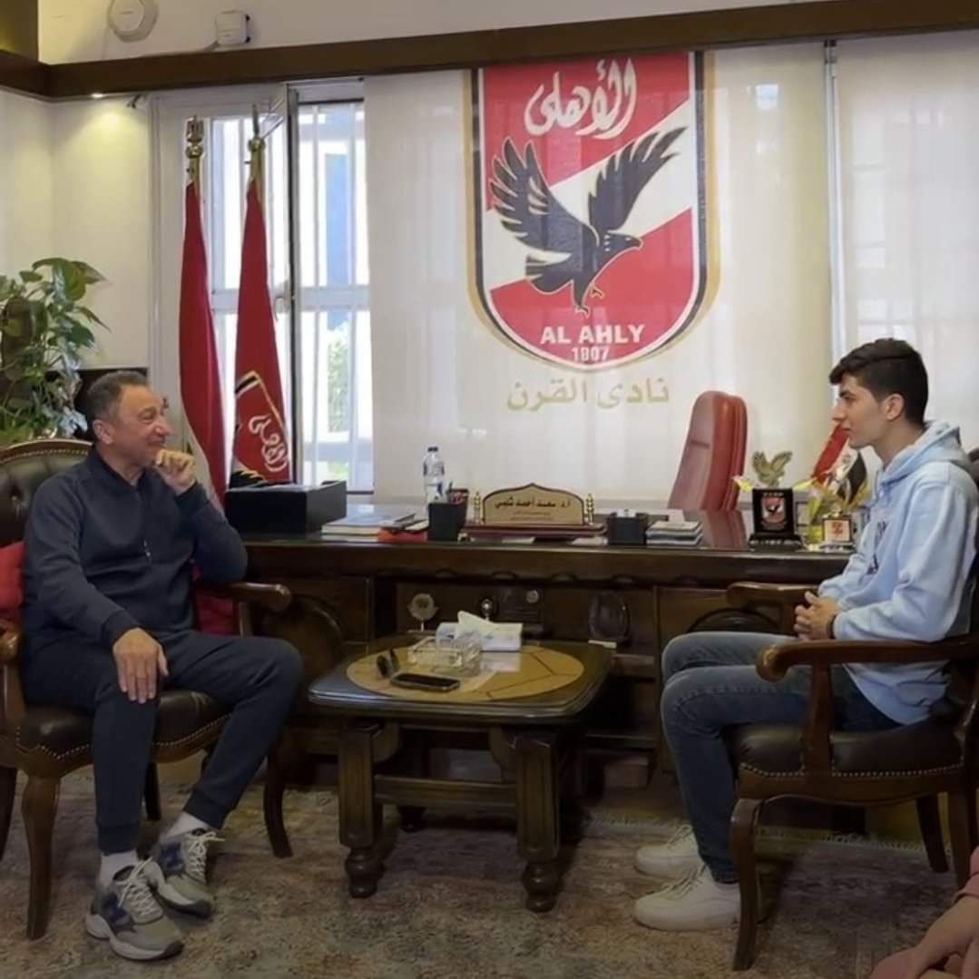 اخبار الأهلي، استقبل محمود الخطيب رئيس القلعة الحمراء، محمود أحد أبطال مصر من ذوي الهمم لتحقيق حلمه باللعب في النادي الأهلي.