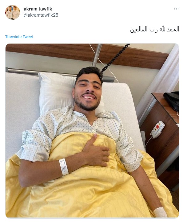 وأكد أبوعبلة على نجاح العملية الجراحة لأكرم توفيق، مشيرًا إلى أن حالة أكرم مستقرة ومعنوياته مرتفعة، وعبر عن تفائله بالعودة سريعًا إلى الملاعب.