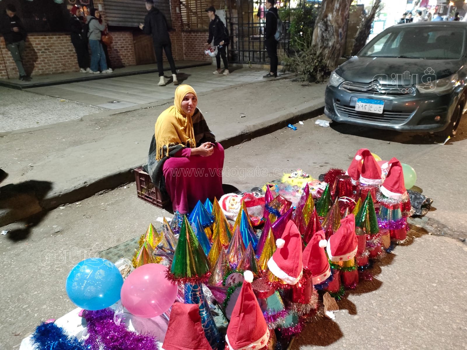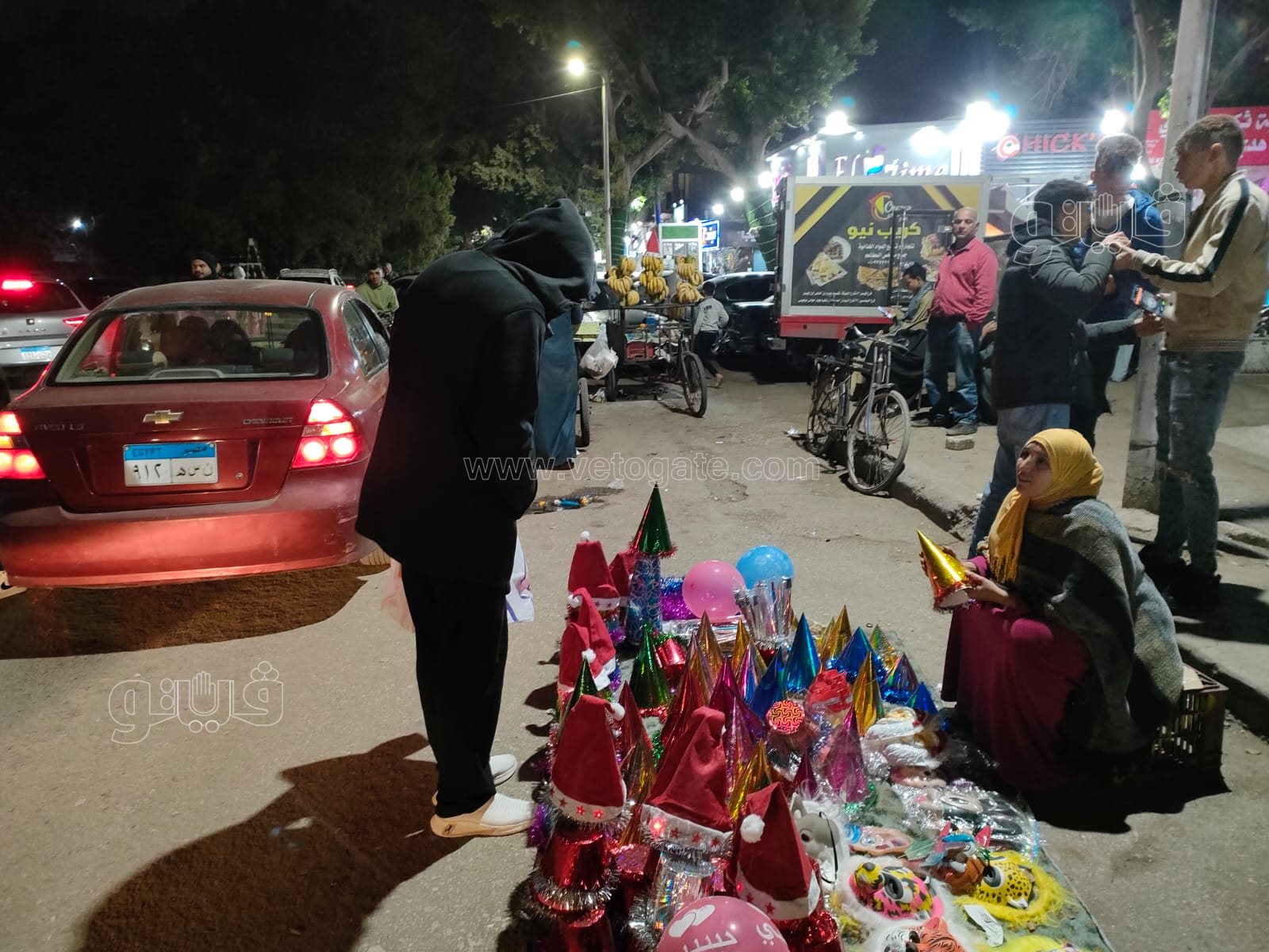 وشهدت منطقة المعادي انتشارا كبيرا للباعة الجائلين لبيع البلالين والاقنعة والالعاب للمارة خلال احتفالهم بليلة رأس السنة.