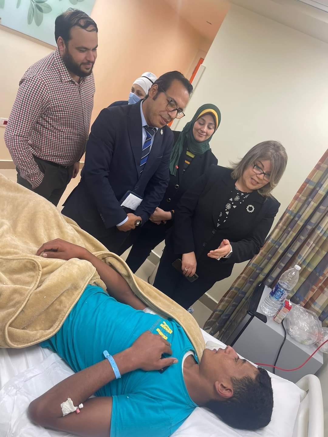 ورافق وكيل مجلس الشيوخ خلال الزيارة الدكتور على حطب وكيل وزارة الصحة بالإسماعيلية وعدد من قيادات مجمع الإسماعيلية الطبي، حيث اطمأنت وكيل مجلس الشيخ على الحالة الصحية للمصابين.
