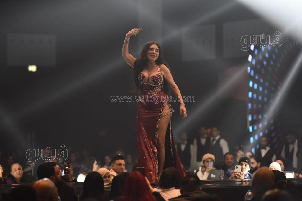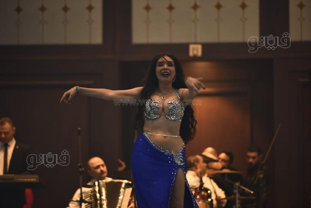 إطلالات دينا في حفل رأس السنة، الراقصة تظهر بالأزرق والأحمر والأسود (صور)