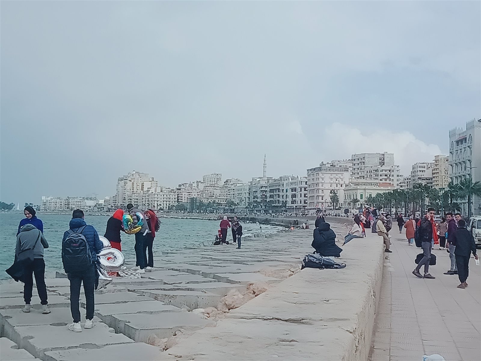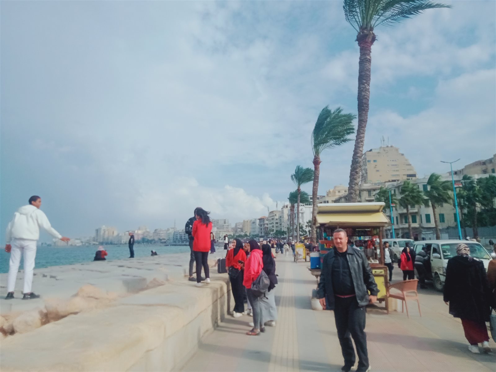 توافد المواطنين على كورنيش البحر بالإسكندرية للاحتفال بأول أيام العام الجديد (صور)