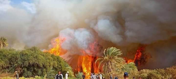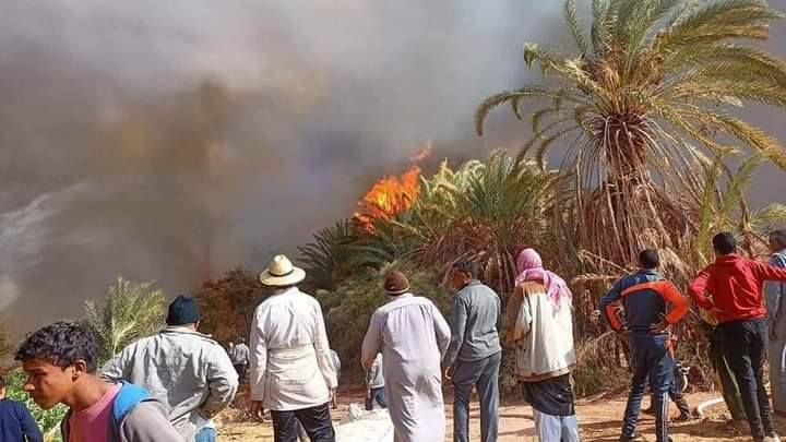 حريق هائل في مزارع نخيل بقرية الموشية بالوادي الجديد