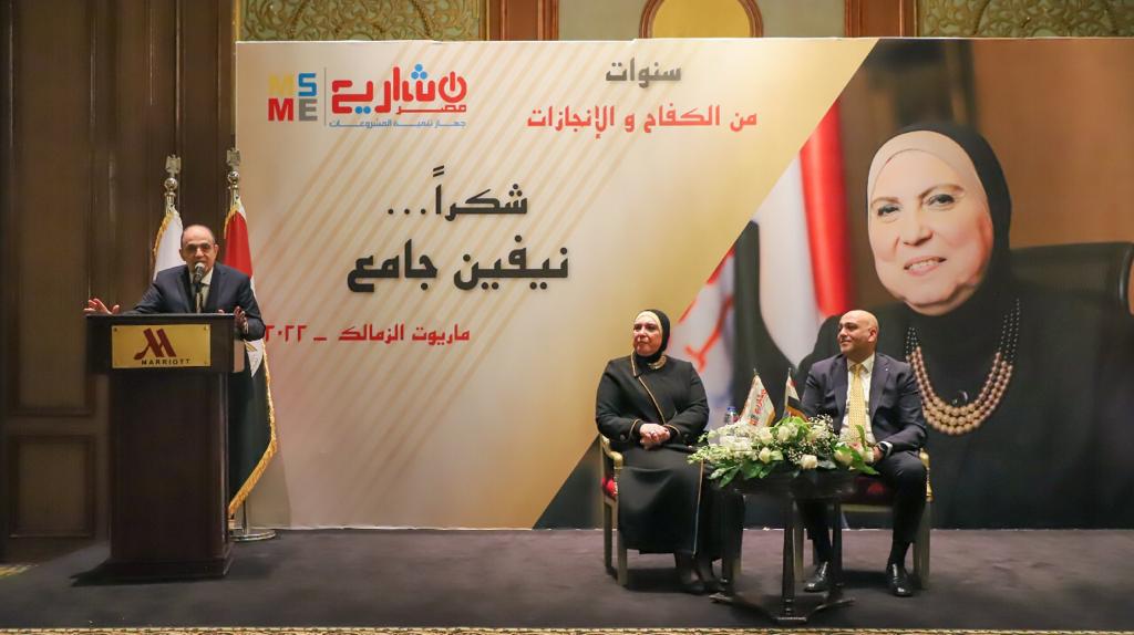 وألقى النائب محمد مرعي رئيس لجنة المشروعات الصغيرة بمجلس النواب كلمة خلال الحفل وجه خلالها الشكر نيفين جامع مشيدا بدورها الكبير في إصدار قانون تنمية المشروعات 152 ونشاطها خلال فترة توليها رئاسة جهاز تنمية المشروعات.