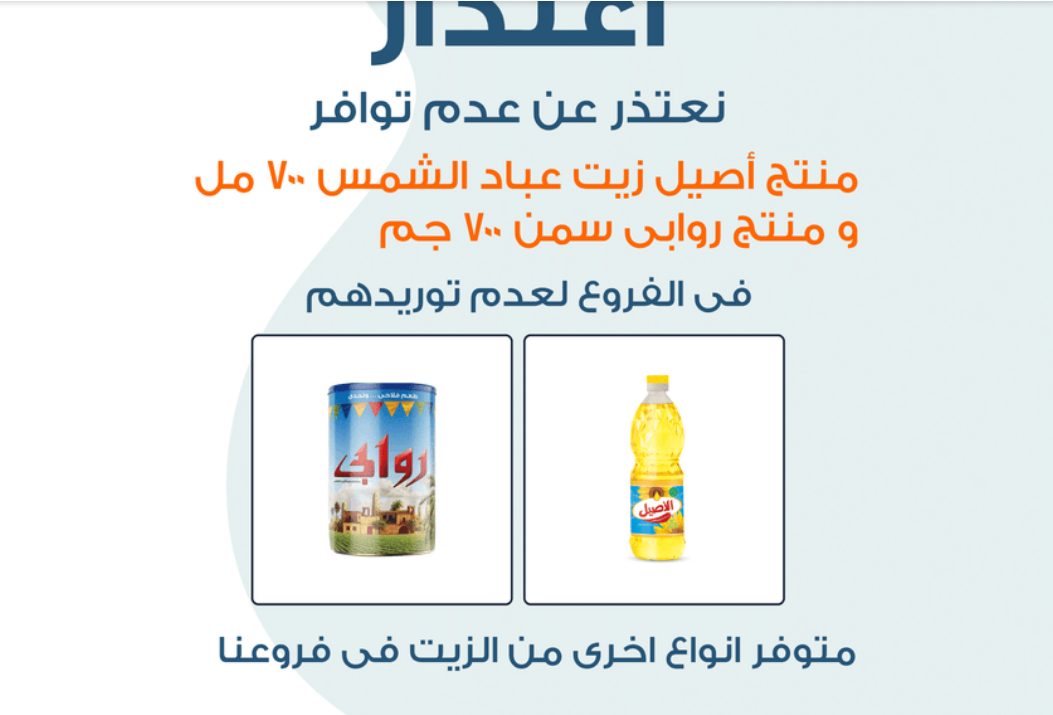 وتساءل عدد كبير من المستهلكين عن حقيقة ذلك الأمر ومدى نقص السلع في الأسواق والبضائع خاصة بعد قيام بعض السلاسل بالاعتذار عن عدم توافر منتجات من بينها أصيل زيت عباد الشمس 700 مل، ومنتج روابي سمن 700 جم منذ أربعة أيام تقريبًا.