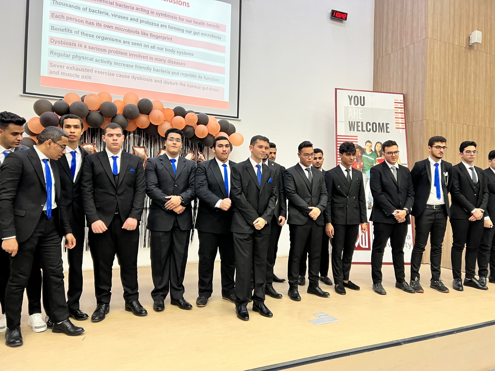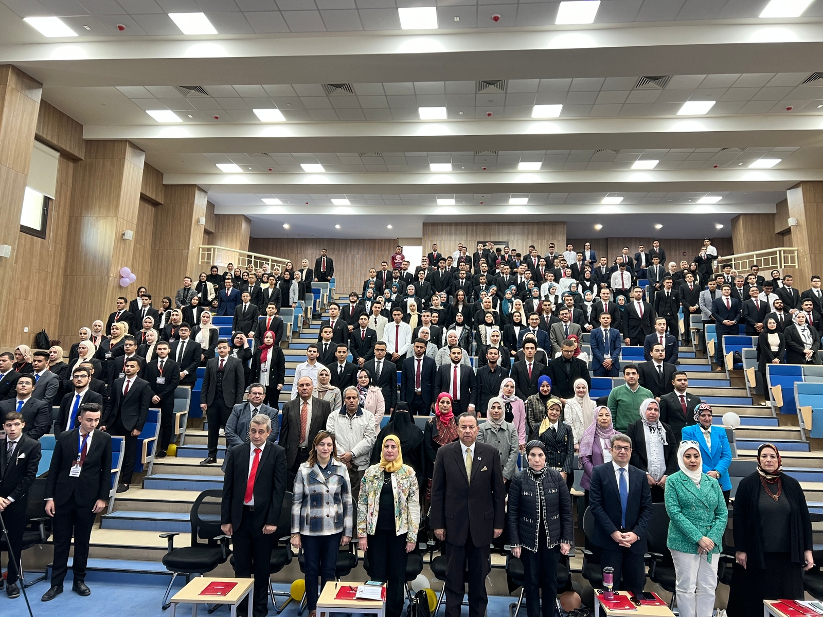 جاء ذلك تحت رعاية الدكتور معوض الخولي رئيس جامعة المنصورة الجديدة وريادة الدكتورة هالة المرصفاوي عميد كلية الطب واشراف الدكتورة سوزي فايز مدير برنامج الطب والجراحة والدكتور وليد الدرس منسق الفصل الدراسي الثالث.