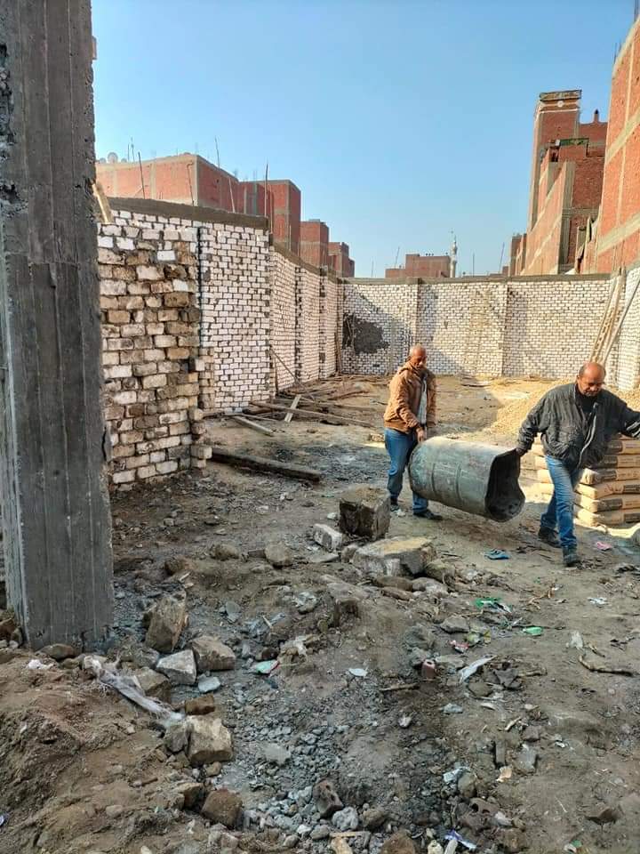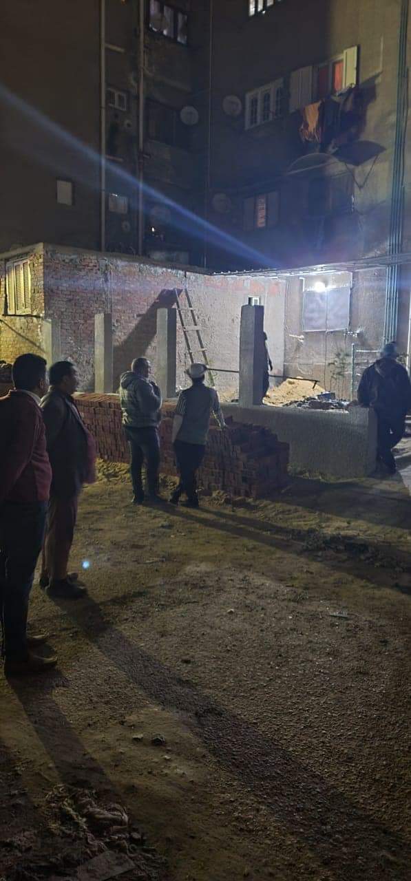 كما تم ايقاف أعمال بناء مخالف بمنطقة مساكن الزلزال بلوك ٣١ مدخل ١ بحلوان
