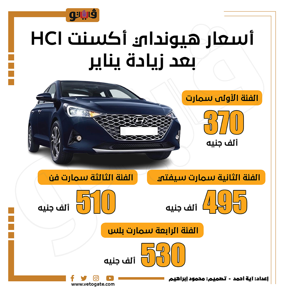 أسعار هيونداي أكسنت HCI بعد زيادة يناير (إنفوجراف) الثلاثاء 03/يناير/2023 - 08:25 م 1/3/2023 8:25:18 PM سيارات آية أحمد شارك طباعة 18 حجم الخط شارك طباعة هيونداي هيونداي اكسنت أسعار هيونداي أكسنت HCI