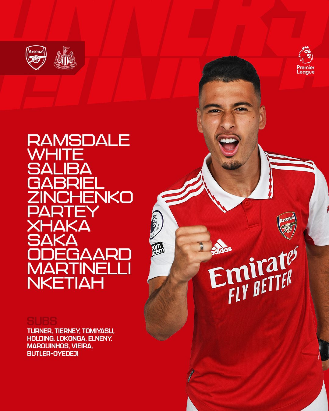 أرسنال: راسمديل - بن وايت - صاليبا - جابرييل - زينشينكو - توماس بارتي - جرانيت تشاكا - مارتن أوديجارد - بوكايو ساكا - مارتينيلي - نيكيتاه.