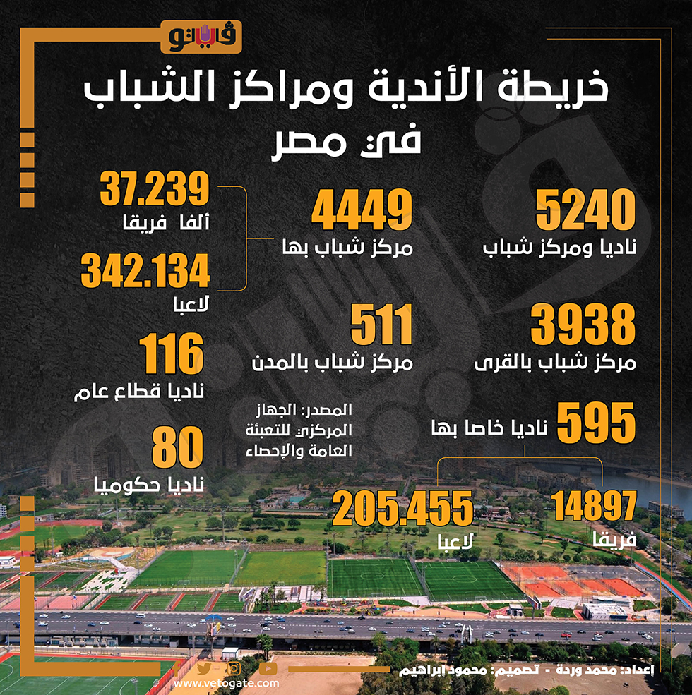 خريطة الأندية ومراكز الشباب في مصر (إنفوجراف)