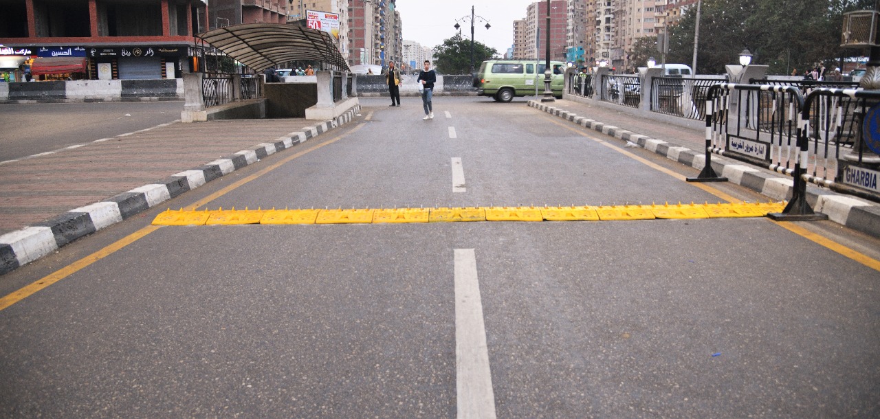 وتابع المحافظ تركيب المطبات في (طريق الكورنيش، شارع المماليك، شارع الجلاء، شارع الجانبية) وجاري التركيب في (طريق عدلي منصور، منطقة عربات الطعام المتنقلة، أمام مجمع الكليات بسرباي ناحية كلية الهندسة، شارع شوبر أمام المطاحن، شارع بنك الدم، شارع سكة تلا، شارع إسكندرية وشارع الصحة النفسية) كما قامت المحافظة بوضع علامات إرشادية قبل المطبات.
