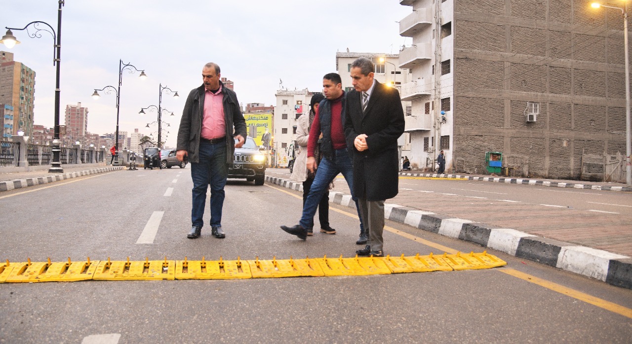 محافظ الغربية يتابع تركيب المطبات الشوكية