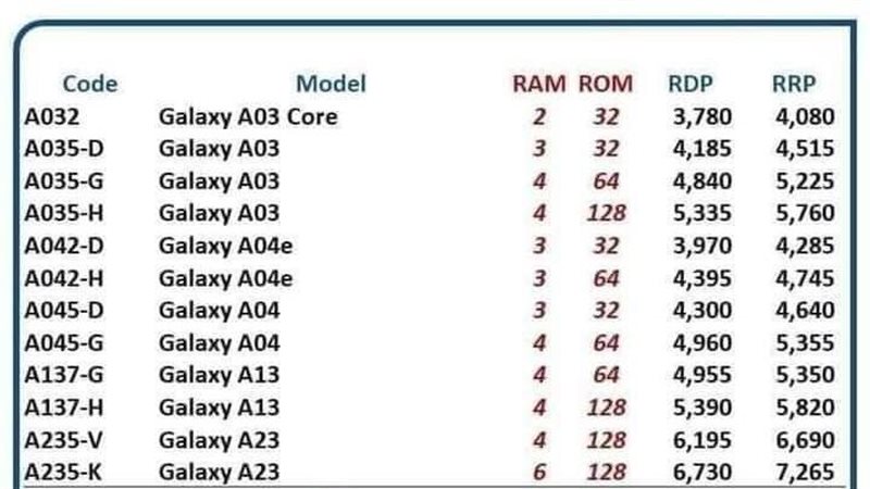 وبالنسبة إلى الهواتف الاقتصادية، على سبيل المثال ارتفع سعر هاتف Galaxy a03 Core من 3.780 جنيه إلى 4.080 جنيه فى الوقت الراهن وارتفع سعر سامسونج a13 من 5.400 جنيه إلى 5800 جنيه فى حين قفز هاتف الفئة العليا سامسونج جالاكسي نوت 20 من 14 ألف جنيه إلى 29 ألف جنيه.