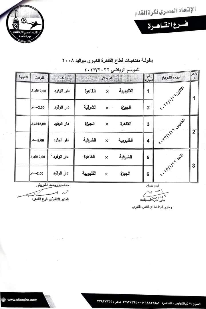 وأكد اتحاد الكرة في خطابه لفروع القاهرة والجيزة والقليوبية والشرقية،إعداد وتجهيز منتخب الفرع مواليد 2005 و 2008 للاشتراك في بطولة منتخبات مناطق القطاعات.