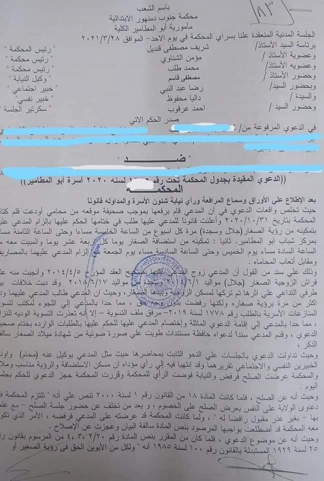 محكمة الأسرة تلزم حاضنة بتمكين الأب من رؤية واستضافة أبنائه