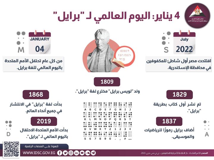 مصر تحتفل باليوم العالمي للغة برايل 4 يناير (إنفوجراف)