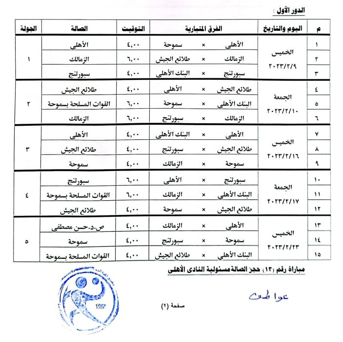 ومن المقرر أن تبدأ مباريات المرحلة الثانية من دوري كرة اليد يوم 9 فبراير المقبل، وتقام آخر جولة من المرحلة نفسها يوم 24 مارس.