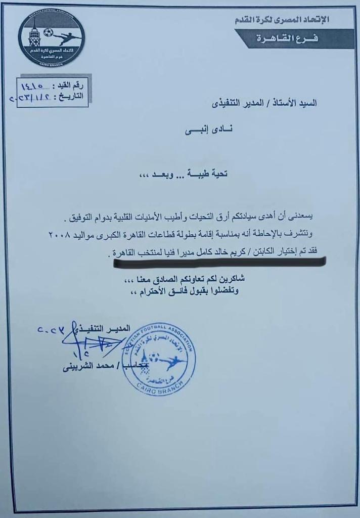 قررت منطقة القاهرة لكرة القدم، بقيادة حمادة الشربيني، اختيار كريم خالد كامل المدير الفني لفريق الناشئين بنادى إنبى مواليد ٢٠٠٨، مديرًا فنيًا لمنتخب القاهرة.