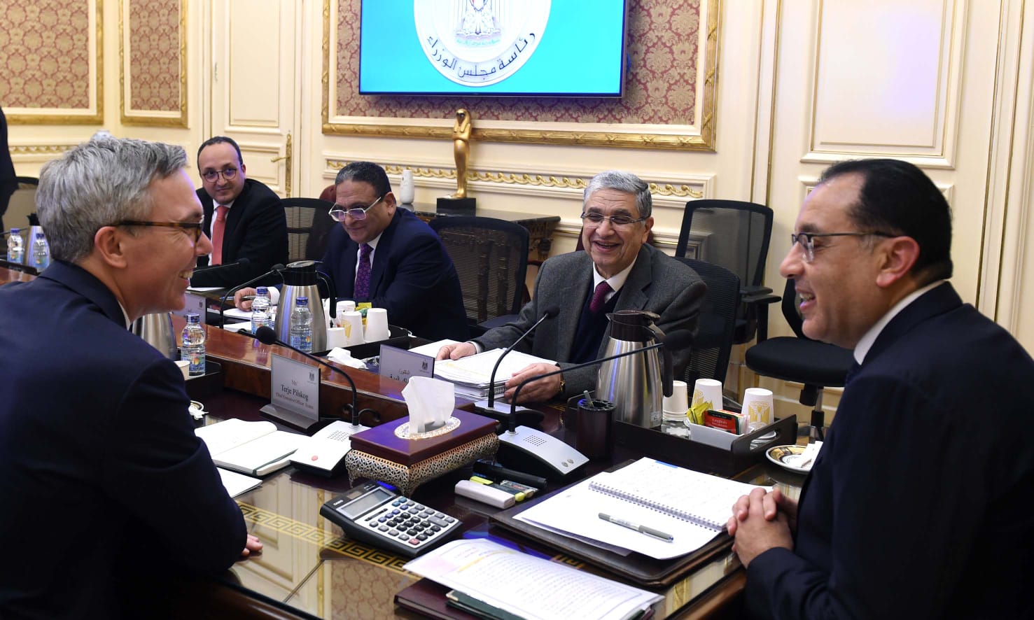 الهيدروحين الأخضر، عقد الدكتور مصطفى مدبولي، رئيس مجلس الوزراء، اليوم، اجتماعا؛ لمتابعة الموقف التنفيذي للمشروعات التي تنفذها شركة "سكاتك النرويجية" في مصر، وذلك بحضور الدكتور محمد شاكر، وزير الكهرباء والطاقة المتجددة، وتيرييه بيلسكوج، الرئيس التنفيذي لشركة "سكاتك النرويجية"، ومحمد عامر، المدير العام الإقليمي للشركة.