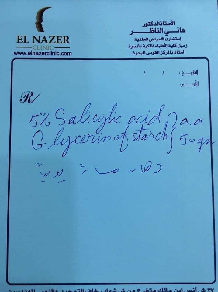 وقال الناظر عبر منشور له على صفحته الشخصية فيس بوك: “يمكن استخدام هذه التركيبة التي لا تحتوي علي الكورتيزون كدهان يوميا ويمكن استخدامها أيضا لمرضي صدفية القدمين والركبتين واليدين ويمكن تحضيرها في أقرب صيدلية للمنزل ، وبهذا يمكنهم توفير وقتهم وفلوس الادوية الغالية وفلوس الكشف في العيادة".
