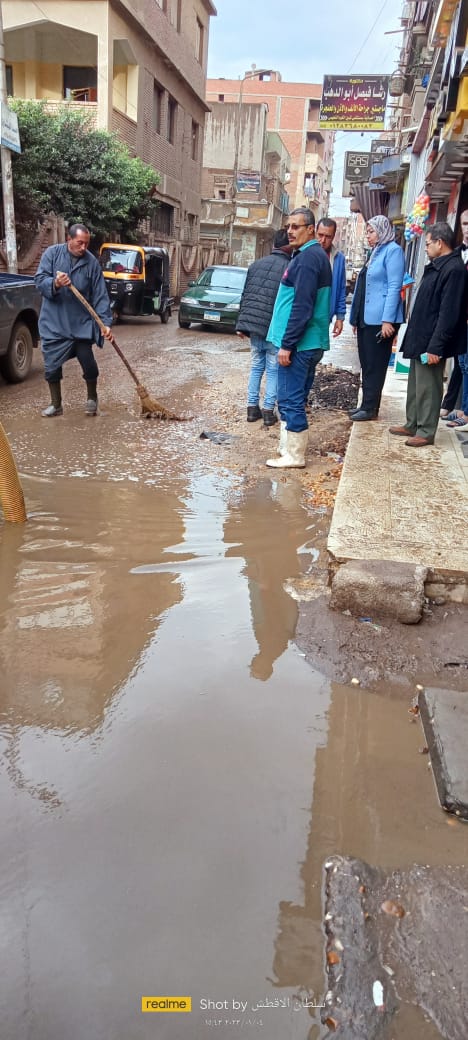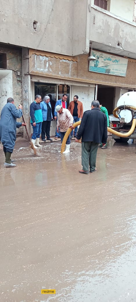 وكلف رؤساء الأفرع بمتابعة عملية شفط مياه الأمطار بالشوارع وعلى الفور تم الدفع بالمعدات اللازمة من عربات الكسح وماكينات الشفط لمواجهة موجة الطقس السيئ من مساء أمس وحتي اليوم الأربعاء 4-1-2023م.