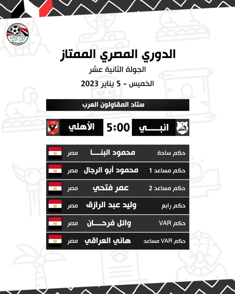 طاقم تحكيم مباراة الأهلى وانبى