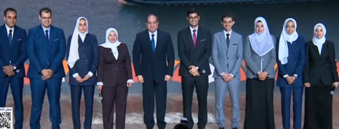 السيسي يلتقط صورة تذكارية مع عدد من شباب سوهاج