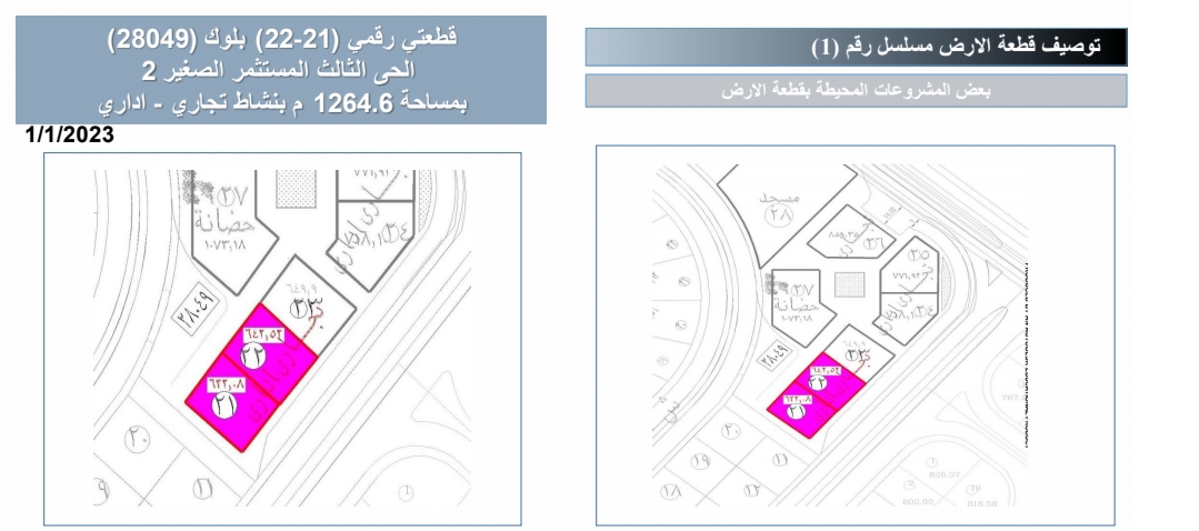 قطعة رقم (22) بلوك (18093) الحي التاسع بمساحة 972.72م بنشاط تجاري وسعرها التقديري 20445 جنيه مصري للمتر2