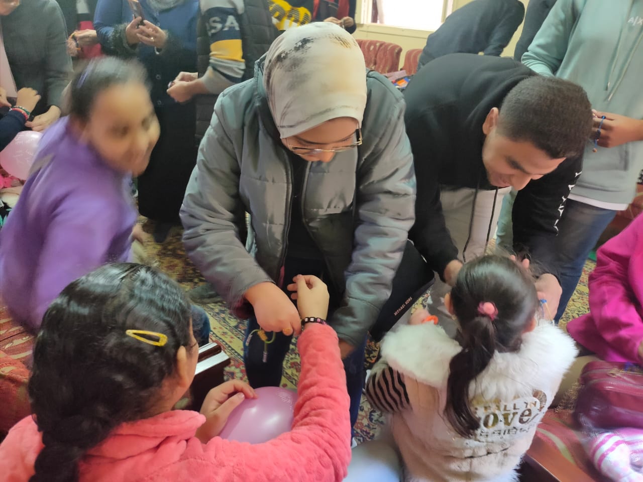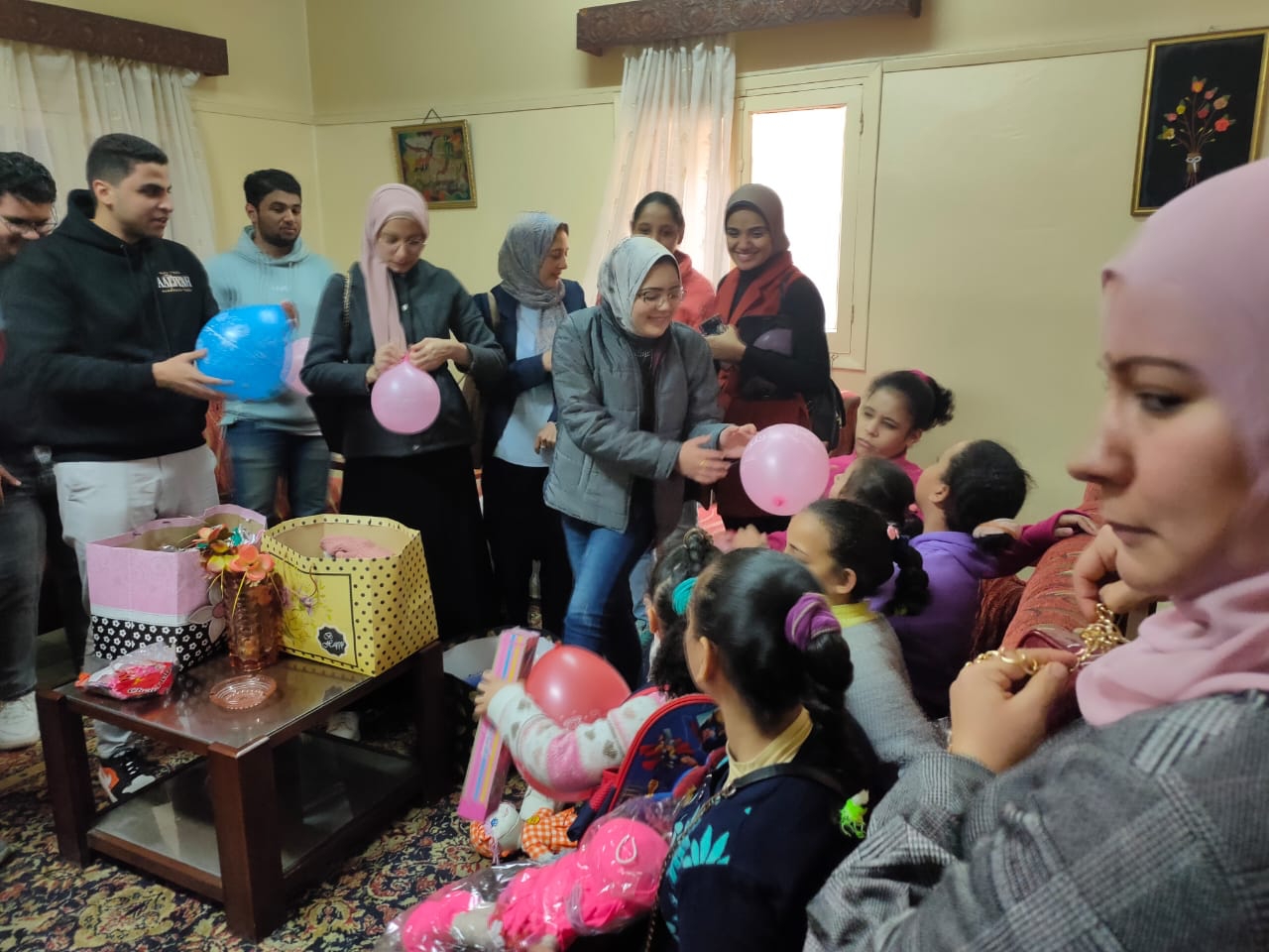 وقام الطلاب خلال الزيارة بتوزيع الهدايا على الأطفال والتقاط الصور التذكارية معهم.
