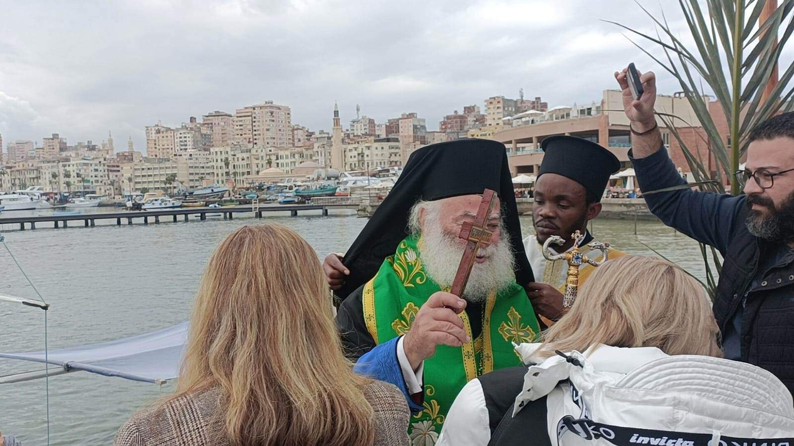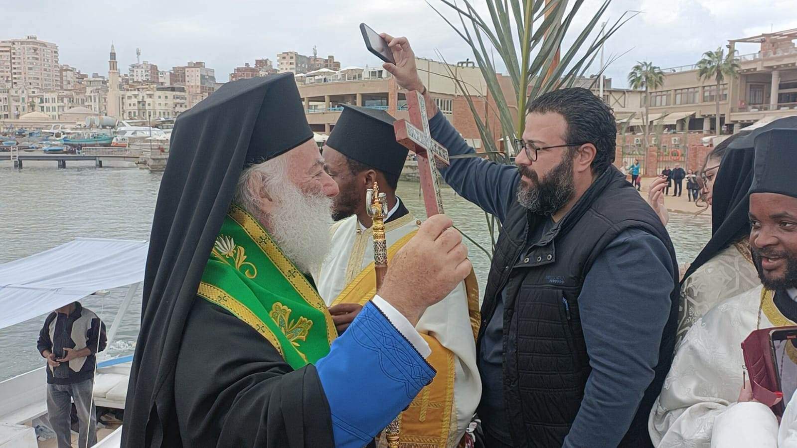 بطريرك الروم الأرثوذكس يحتفل بعيد الغطاس في الإسكندرية حمام أبيض وصليب في المياه