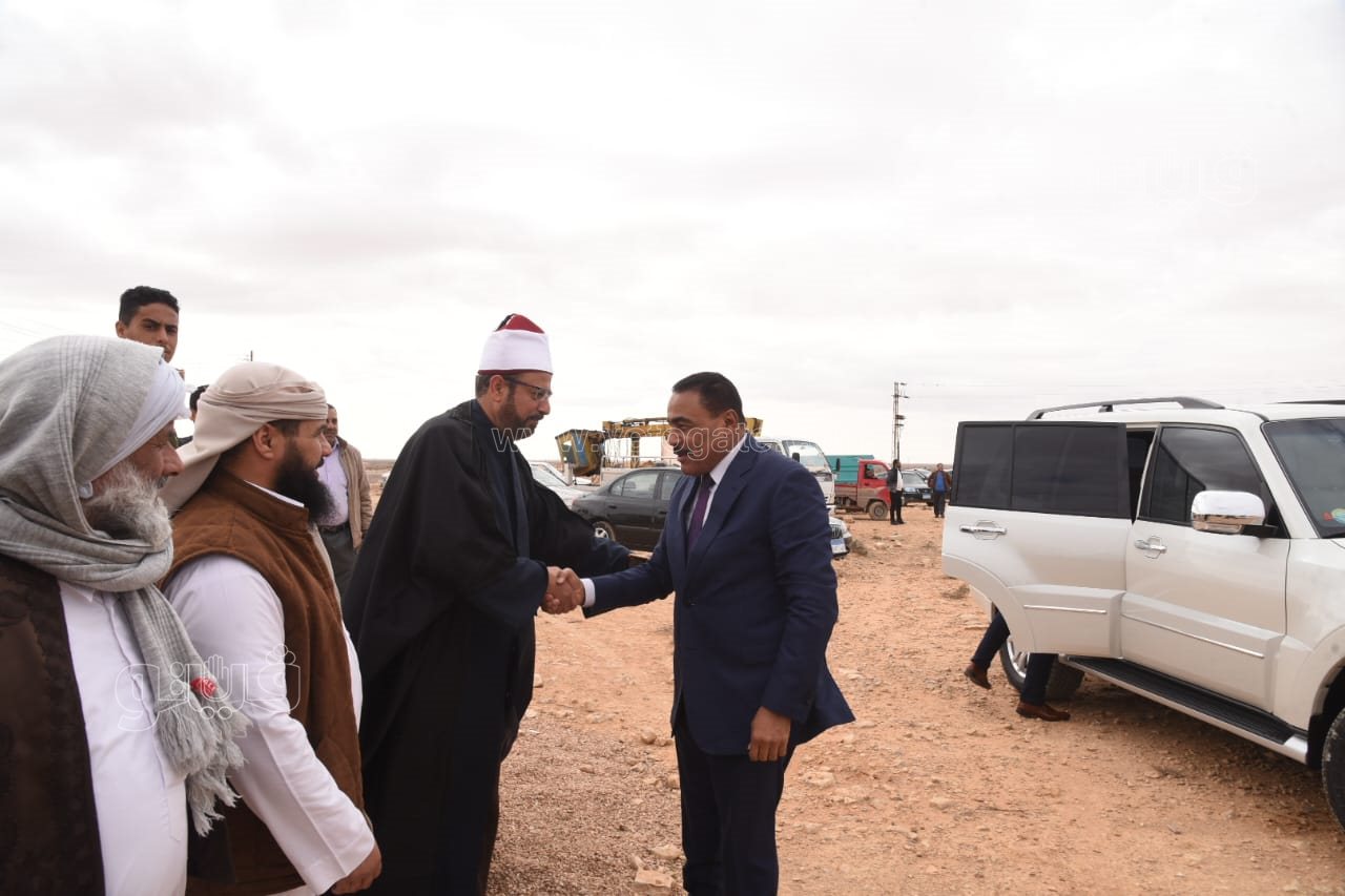 ورافق اللواء خالد شعيب محافظ مطروح كلا من النائب جمال الشورى والشيخ حسن عبد البصير وكيل وزارة الأوقاف والعمدة خير رئيس العمد والمشايخ وعدد من القيادات التنفيذية بالمحافظة.