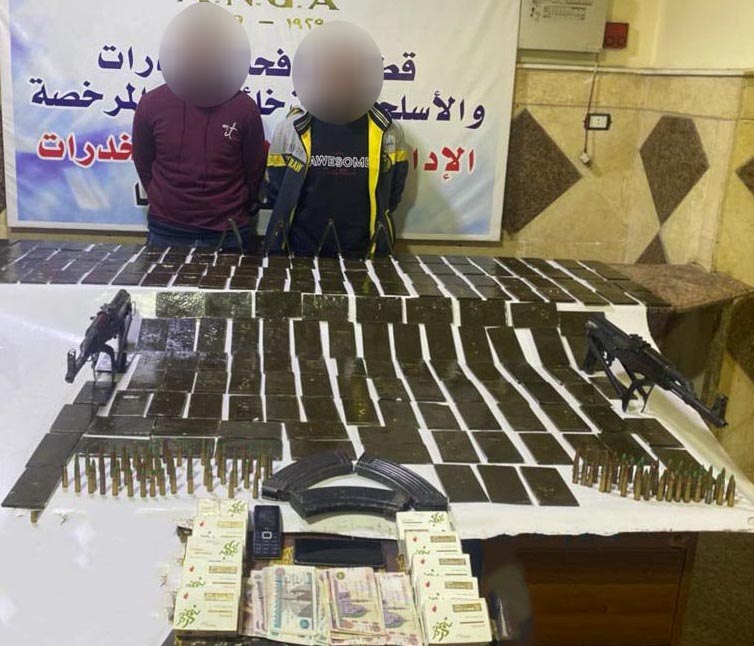 وعقب تقنين الإجراءات بالإشتراك مع قطاع الأمن المركزى ومديرية أمن البحيرة والإدارة العامة لتدريب كلاب الأمن والحراسة تم ضبطهما حال تواجدهما بدائرة المركز، وبحوزتهما (192 طربة لمخدر الحشيش وزنت 19,200 كيلو جرام – 1000 قرص مخدر لعقار التامول – 2 بندقية آلية و3 خزائن وعدد من الطلقات لذات العيار - مبلغ مالى – 2 هاتف محمول).