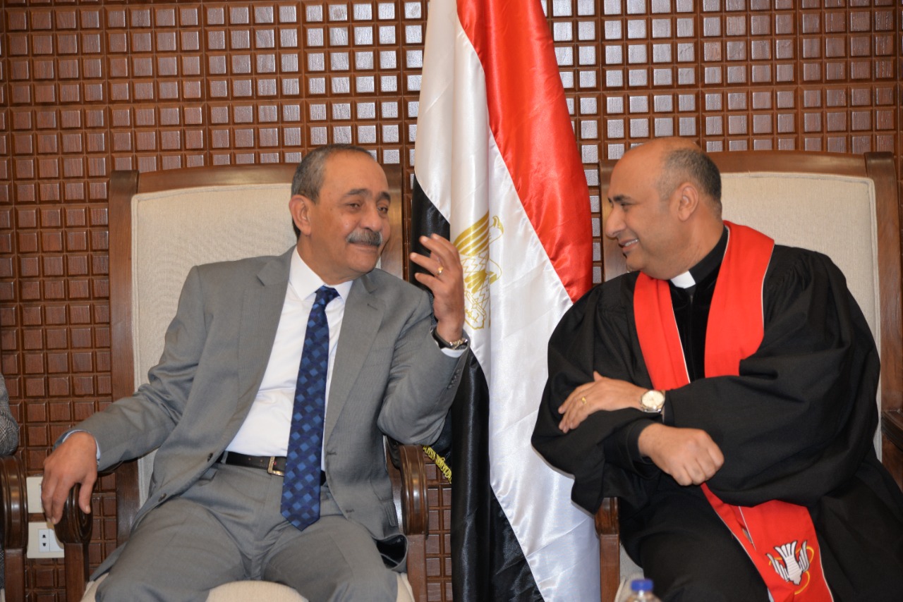 كما زار محافظ الإسماعيلية الكنيسة الإنجيلية الواقعة في نطاق حي أول الإسماعيلية بشارع أم كلثوم، مقدمًا التهنئة للدكتور أيمن سامي راعي الكنيسة الإنجيلية بالإسماعيلية وتوابعه بمناسبة عيد الميلاد المجيد.