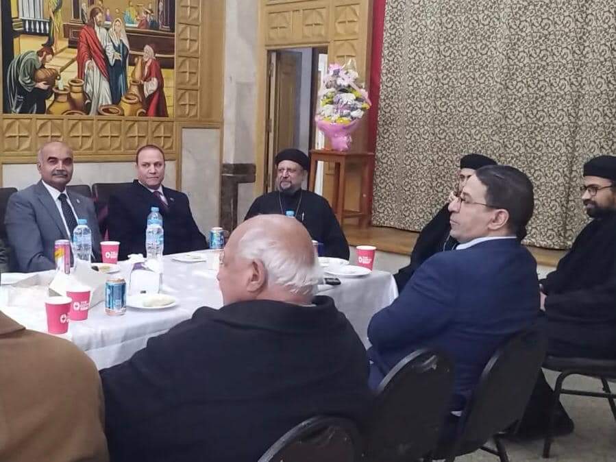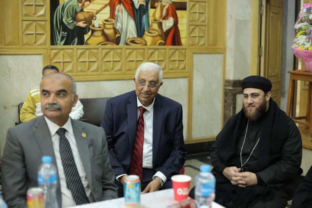 وقدم السكرتير العام التهاني للأقباط بمناسبة الاحتفال بعيد الميلاد المجيد، مشيدًا بما تقوم به الكنائس في إرساء قيم التسامح والمحبة، ومتمنيًا أن يعيد المولى عز وجل هذه المناسبة على مصرنا الحبيبة بالخير والامن والامان والاستقرار.