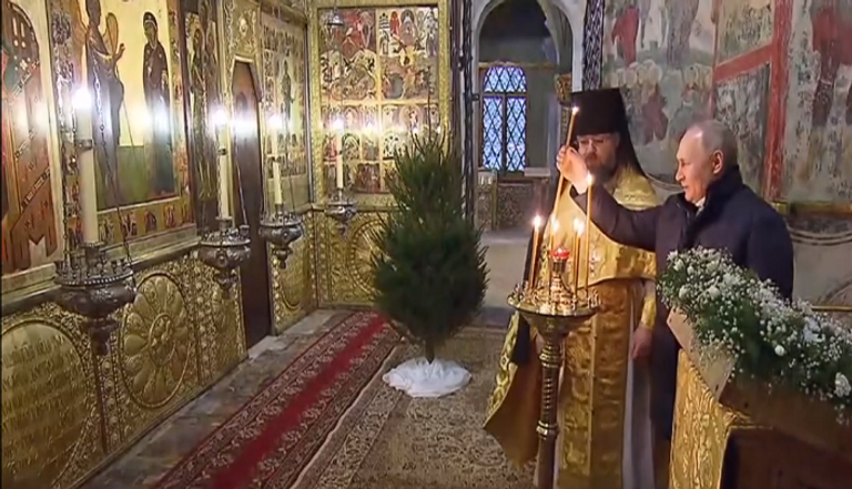 بوتين يحتفل بالبشارة في عيد الميلاد، وكييف تهنئه بالهاون (صور)