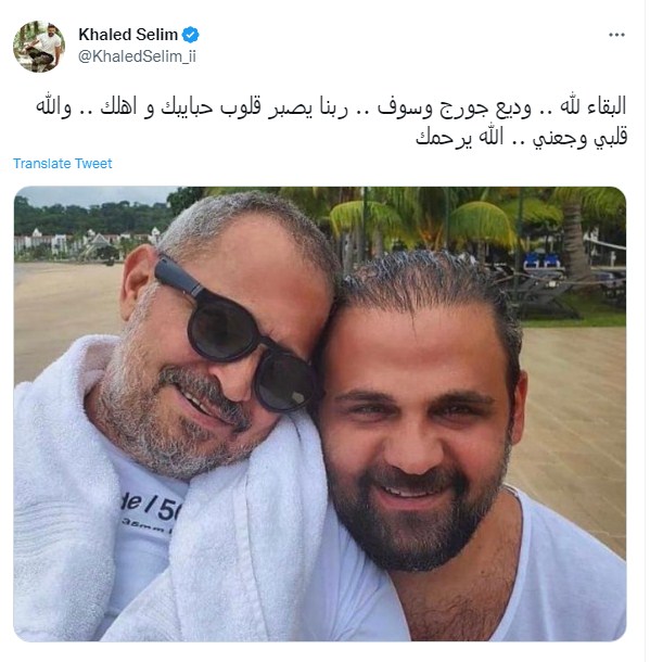 أما الفنان خالد سليم فعبر عن حزنه قائلًا: "البقاء لله.. وديع جورج وسوف.. ربنا يصبر قلوب حبايبك واهلك.. والله قلبي وجعني.. الله يرحمك".