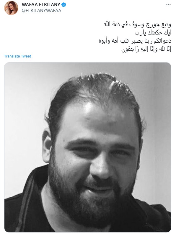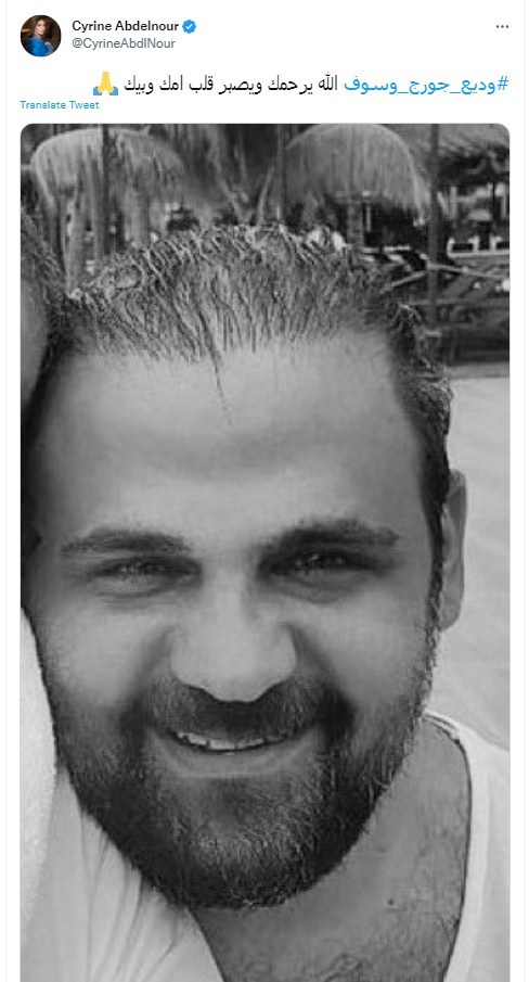 أما الفنانة سيرين عبد النور فنعته قائلة: "#وديع_جورج_وسوف الله يرحمك ويصبر قلب امك وبيك"