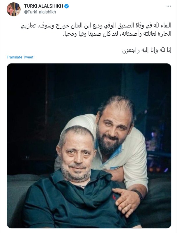 ونعاه المستشار السعودي تركي آل الشيخ قائلًا: "البقاء لله في وفاة الصديق الوفي وديع ابن الفنان جورج وسوف، تعازيي الحاره لعائلته وأصدقائه، لقد كان صديقا وفيا ومحبا. إنا لله وإنا إليه راجعون".
