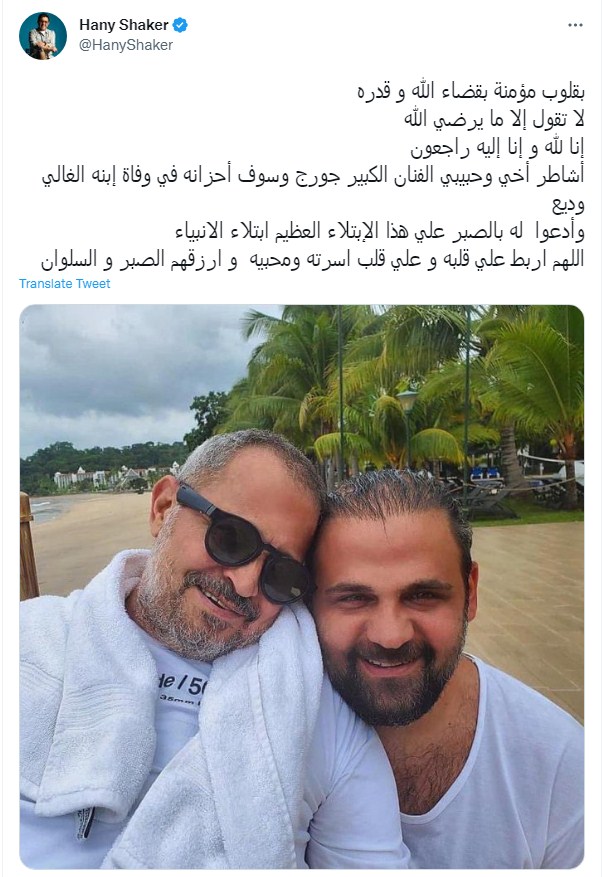 ونعته الفنانة يسرا قائلة: "صديقي وأخي العزيز #جورج_وسوف ربنا يصبر قلبك على فراق ابنك الغالي وديع.. ربنا يتغمده بواسع رحمته ويلهمكم الصبر والسلوان."