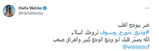وعلقت هيفاء وهبي قائلة: "خبر بيوجع القلب #وديع_جورج_وسوف لروحك السلام الله يصبّر قلبك ابو وديع الوجع كبير والفراق صعب"