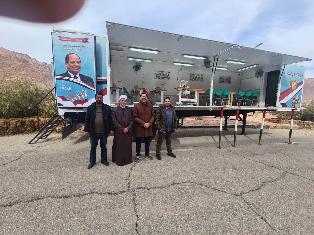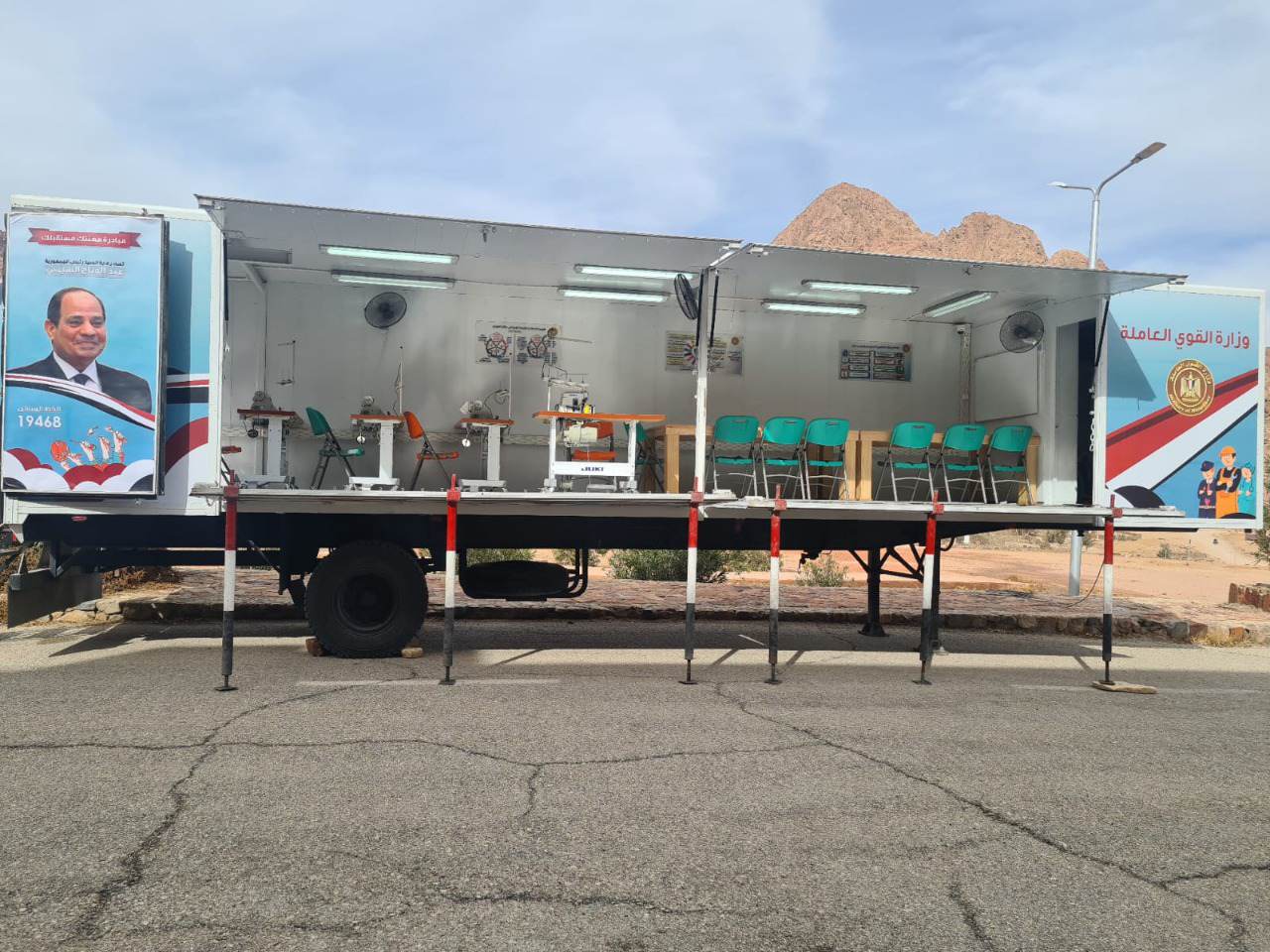 واوضحت على لسانهم، أن تلك العربات المتنقلة ستوفر عليهم مشقة الانتقال للتدريب في المراكز التدريبية الثابتة، فوجه الوزير وقتها بسرعة تجهيز العربة التي اختارتها سلمية جبلي،وذلك بماكينات التطريز، تمهيدا لقيامها بمهمتها الوطنية في خدمة سيدات سيناء، وذلك تنفيذا لتوجيهاته السابقة خلال تفقده الشهر الماضي لدورة تدريبية على مشغولات يدوية، والحاسب الألي نظمتها مديرية القوى العاملة بمحافظة جنوب سيناء بالوحدة المحلية بمنطقة سانت كاترين، وسرعة توفير عربة تدريب متنقلة من العربات التي تستعد الوزارة لاطلاقها وإرسالها إلى مدينة سانت كاترين لخدمة المرأة البدوية وتدريبها على المشغولات اليدوية التراثية ومساعدتها على العمل وخدمة أسرتها واشراكها في عملية التنمية التي يرسي قواعدها الرئيس عبدالفتاح السيسي.
