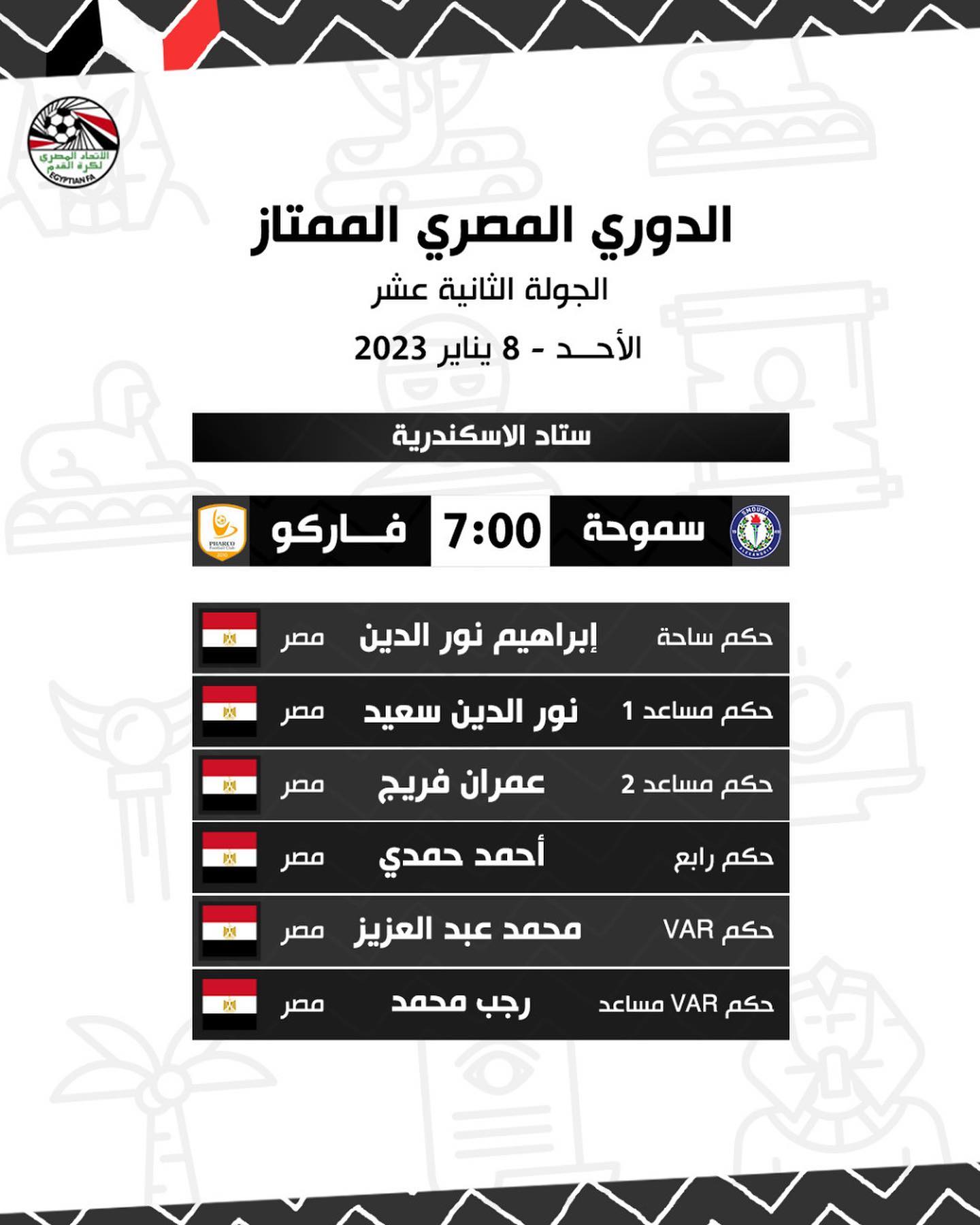 الدوري المصري، حكام مباريات الأحد في الجولة الثانية عشر
