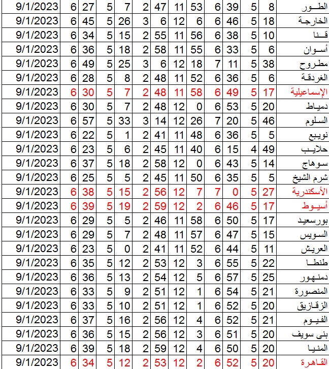مواقيت الصلاة اليوم بتوقيت أسيوط