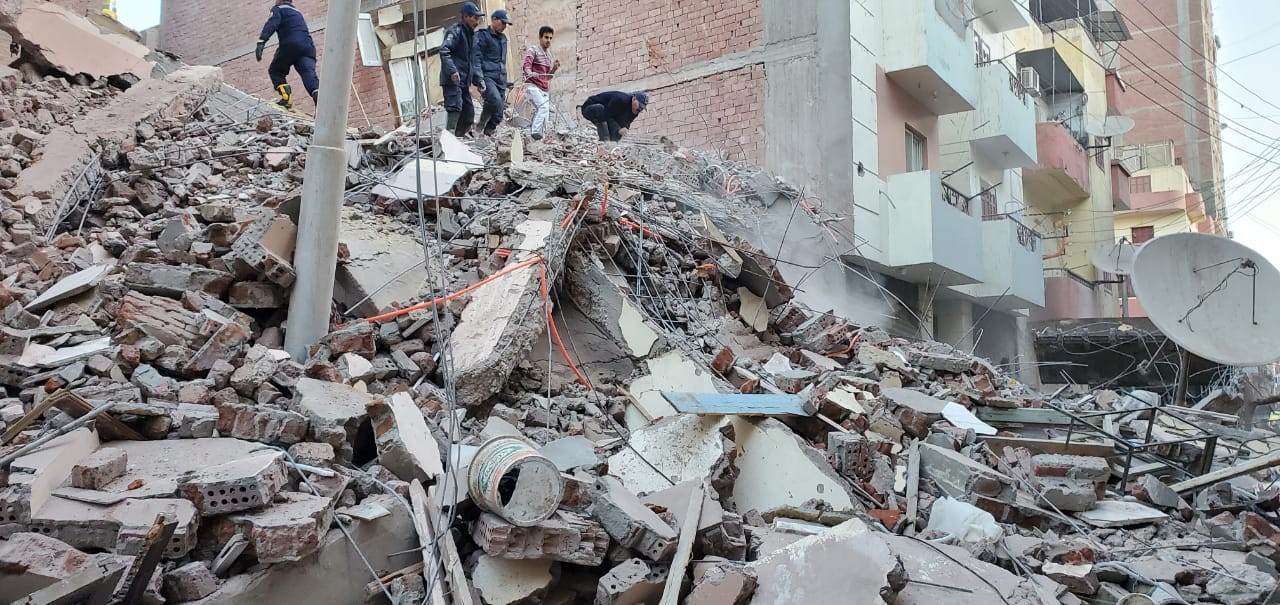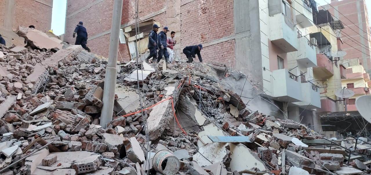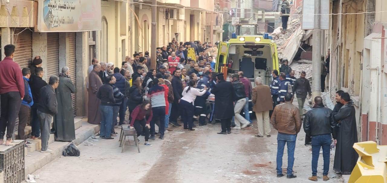 و انتقل إلى موقع الحادث كل من اللواء مهندس شاكر يونس السكرتير العام للمحافظة والعميد علاء عبد الجابر السكرتير العام المساعد للمحافظة وقوات الحماية المدنية وتم الدفع بعدد 3 سيارات حماية مدنية وأكثر من 12 سيارة إسعاف وسيارات الحملة الميكانيكية بالمركز لرفع الأنقاض وانتشال السكان وفريق الإغاثة التابع لمديرية التضامن الاجتماعي في حضور محمد بشير رئيس غرب ونوابه ومعدات الحملة الميكانيكية وتم فرض طوق أمني حول المنزل وتمكنت قوات الحماية المدنية من استخراج فتاة من تحت الأنقاض على قيد الحياة وتم نقلها للمستشفى لإجراء الفحوصات اللازمة وجارى إنقاذ باقى السكان.