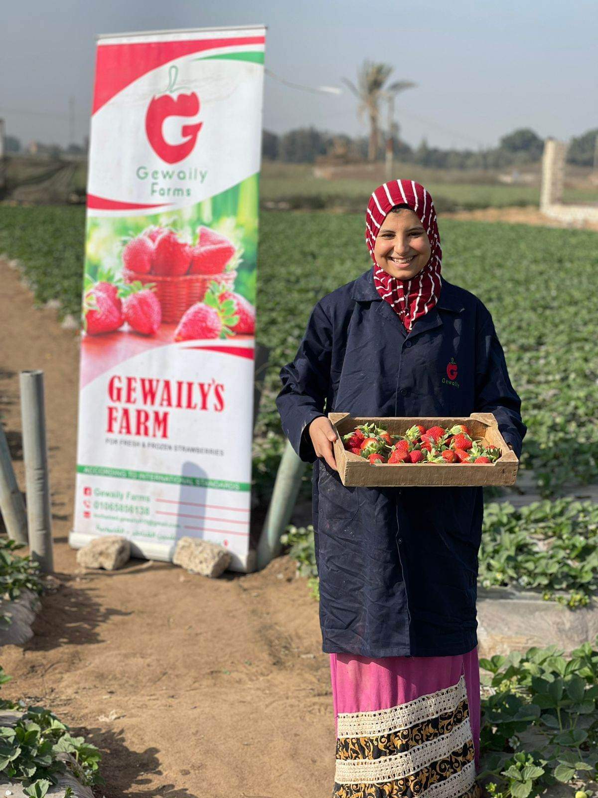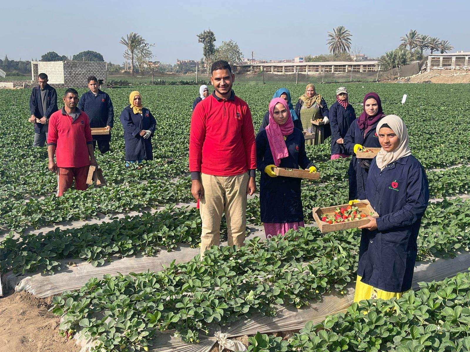 باليونيفورم الخاص بالعمل والكاب الي جانب صندوق خشبي صغير بمزرعة جويلي شبين القناطر محافظة القليوبية، تجد 3فتيات اثنتان منهما بالثانوية العامة الثالثة في سنتها الاولي بكلية التجارة قسم اللغة الانجليزية جامعة عين شمس واللاتي اتخذن من المحصول الاحمر وسيلة يكملن بها المضي نحو المستقبل ومواجهة الحياة.