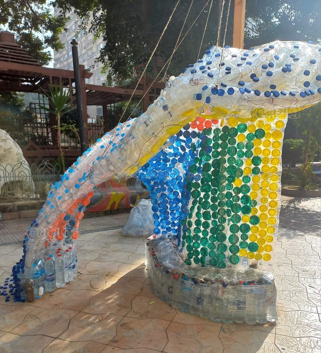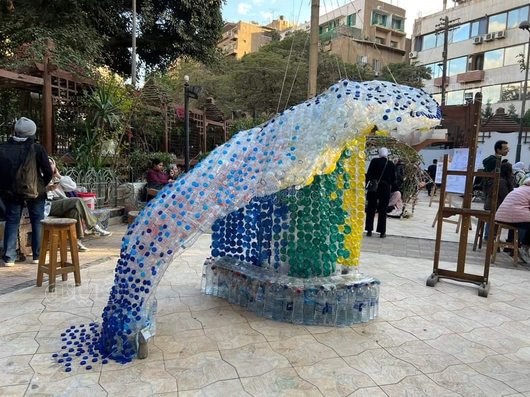 - التجربة الانشائية بعمل إعادة تدوير للزجاجات والماكت على شكل موجة البحر للتوعية بخطر البلاستيك على البحار والمحيطات.