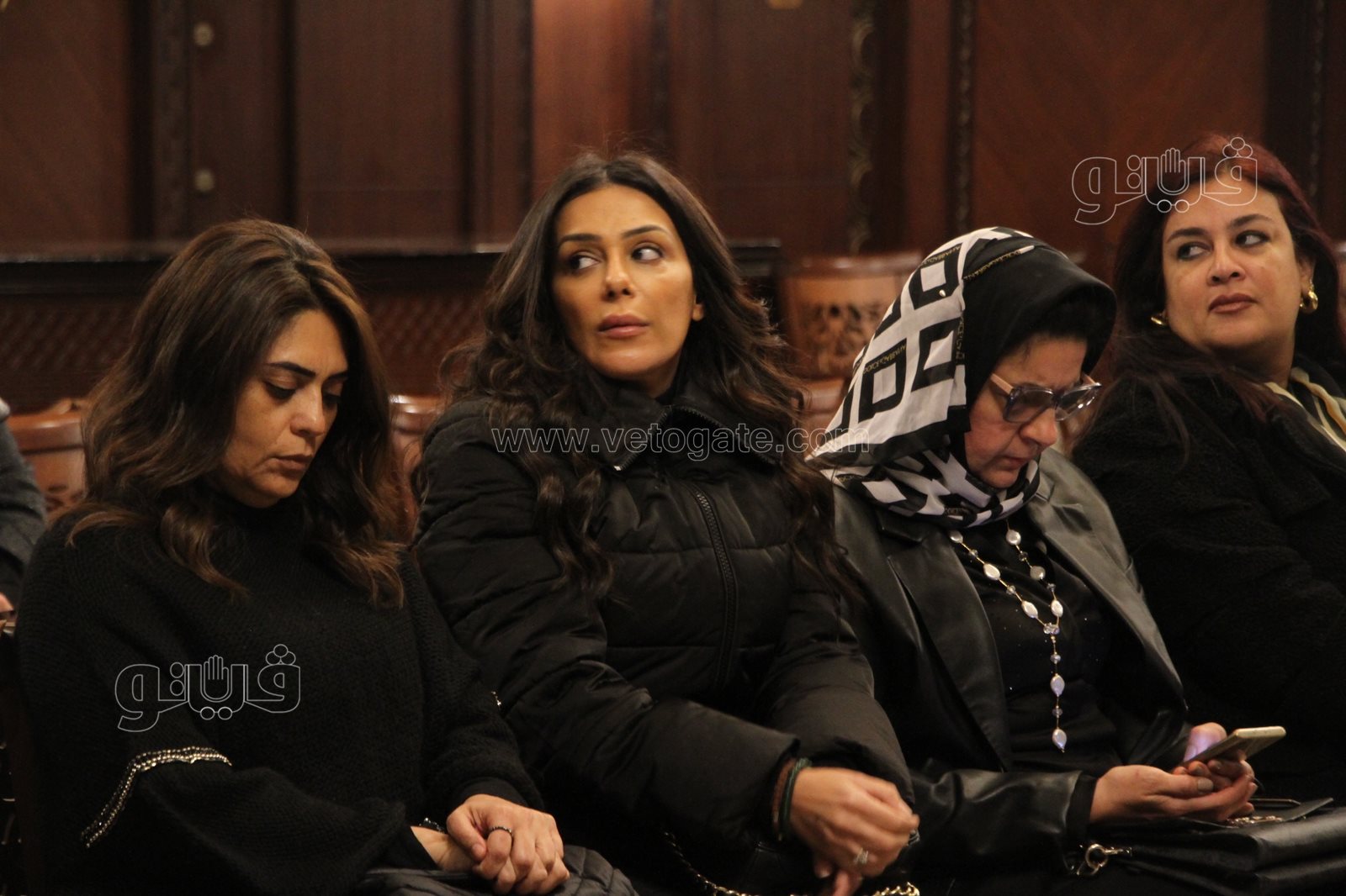 أشرف زكي وتامر مرسي وإنجي المقدم في عزاء والدة طارق لطفي (فيديو وصور)