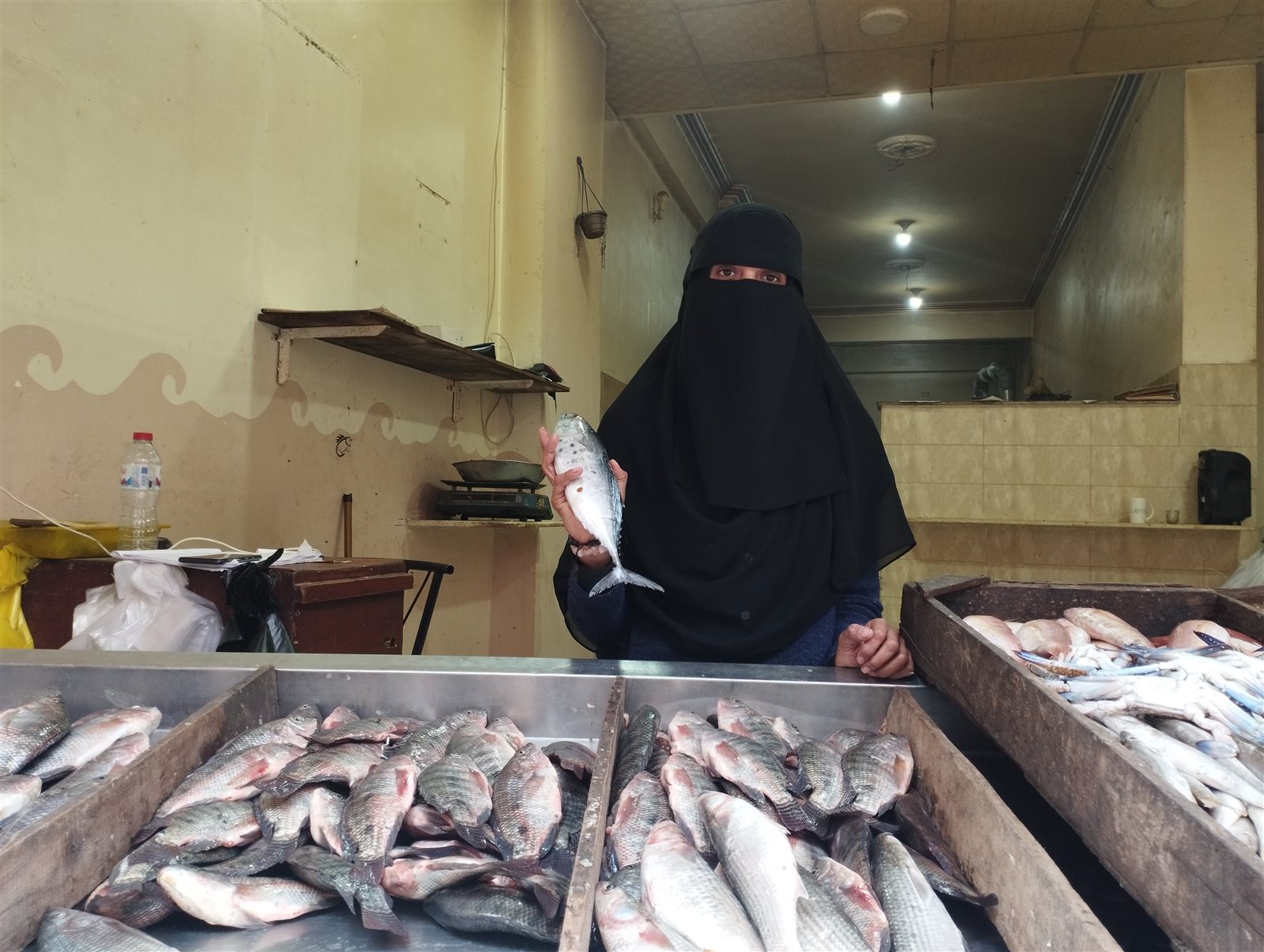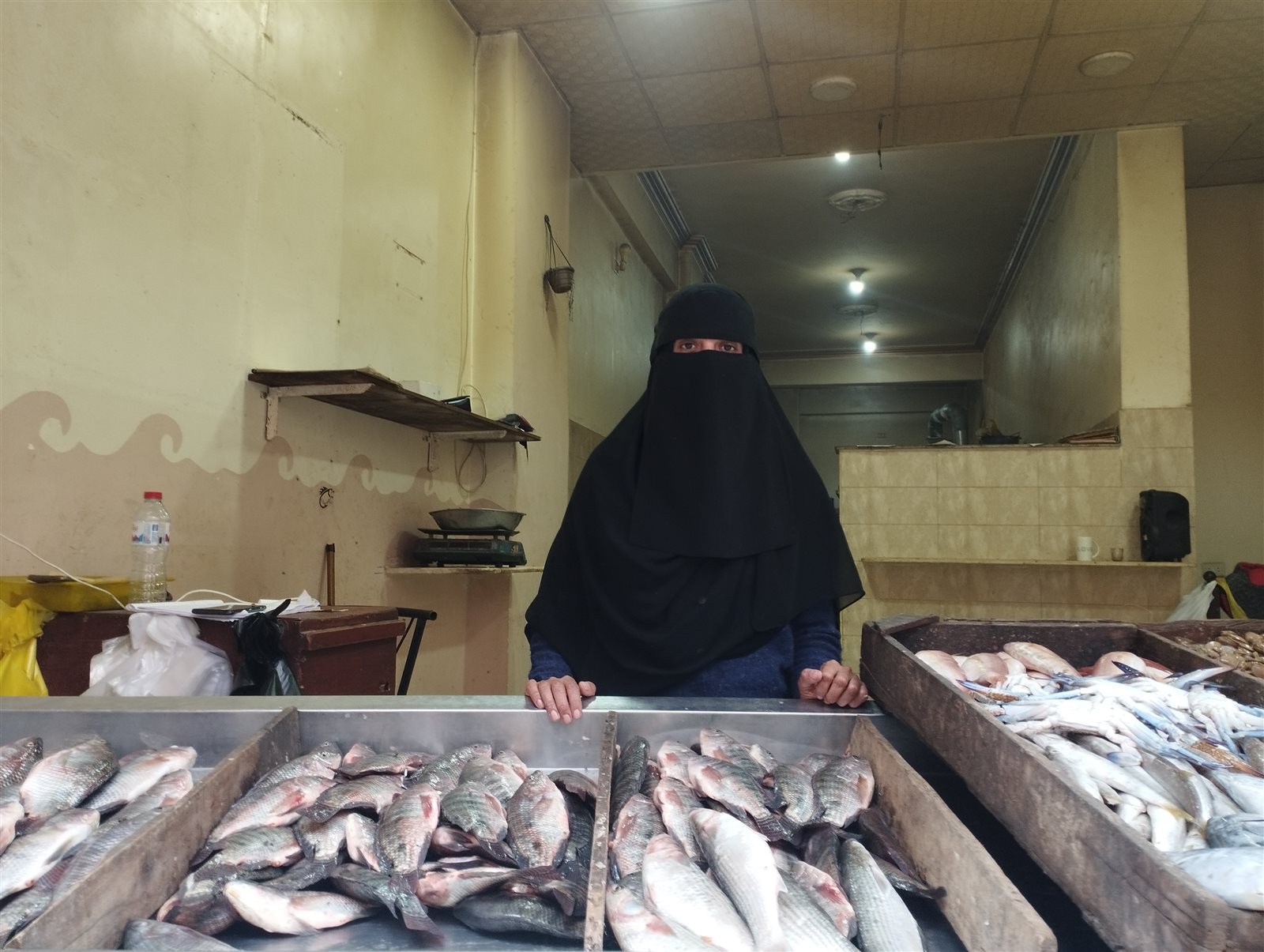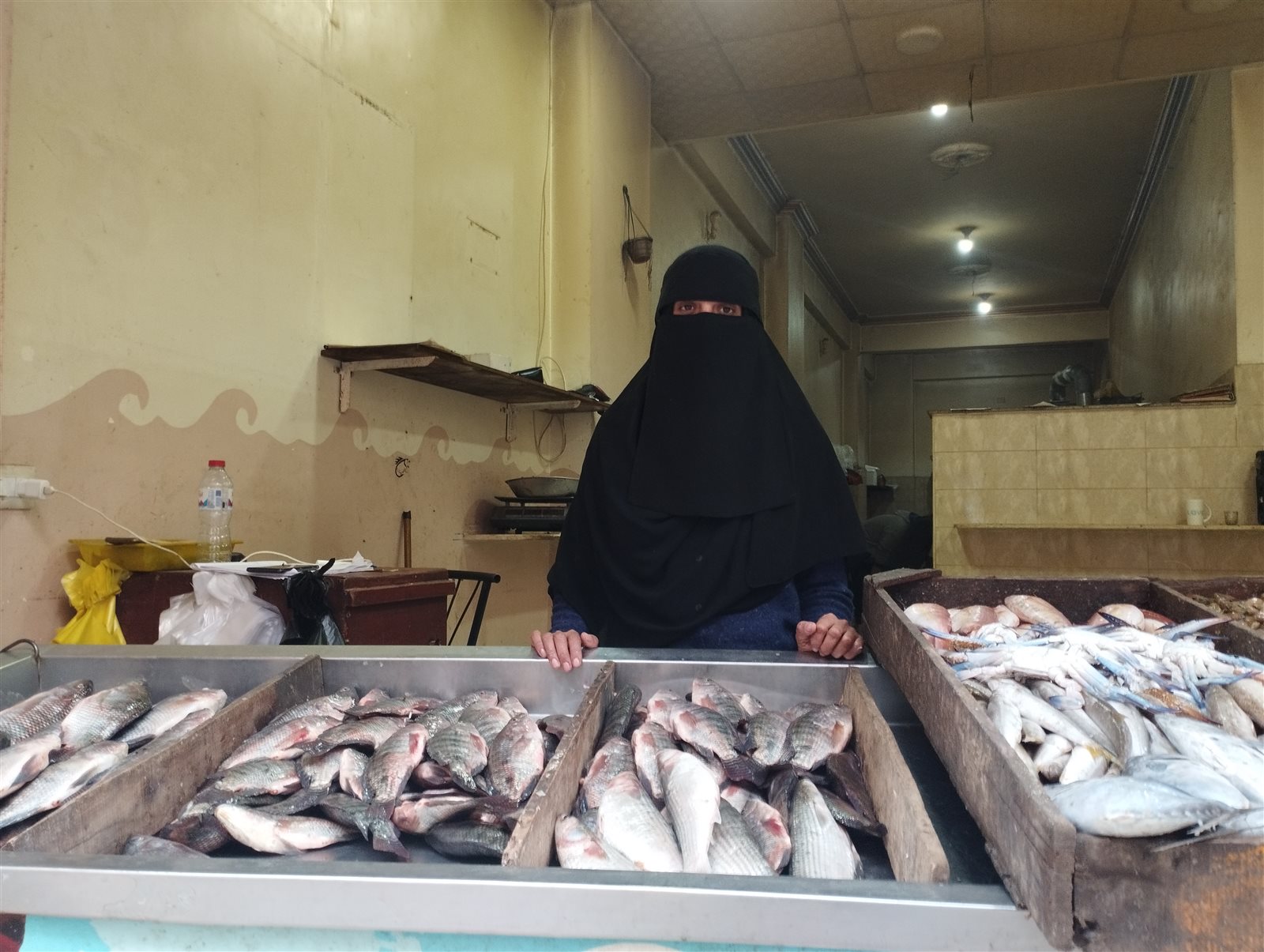 خريجة تجارة ومعلمة سمك،قصة كفاح صفاء في سوق دمنهور (صور)